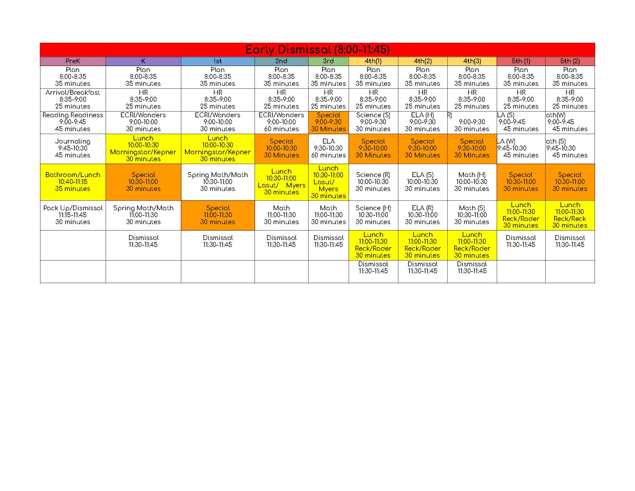 25-26 SS Schedules – Early Dismissal Schedule