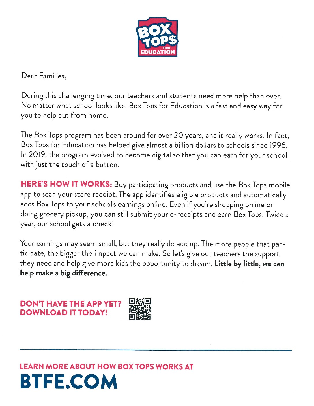 Box Top$ – Parent Letter
