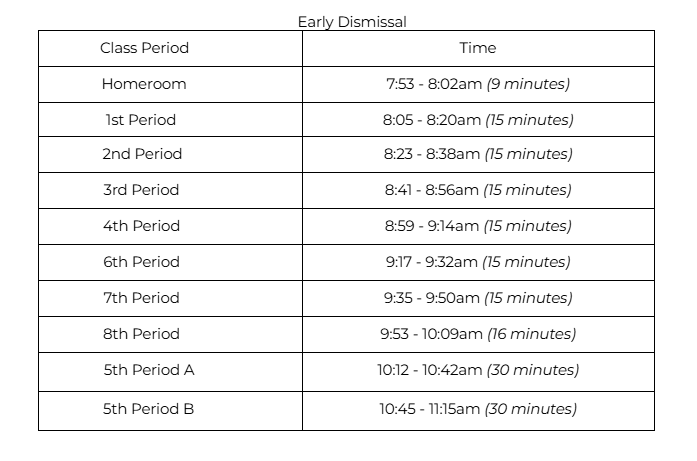 Early Dismissal Schedule