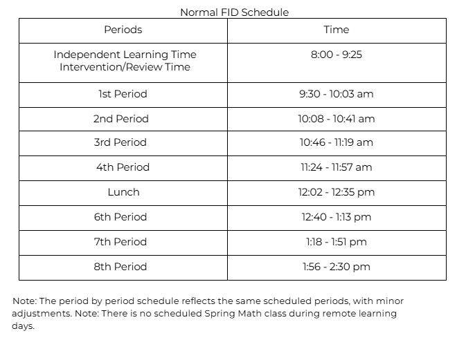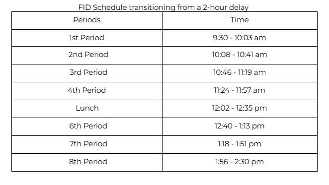 FID Schedule Transitioning from 2-Hour Delay