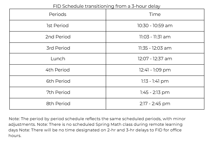 FID Schedule Transitioning from 3-Hour Delay