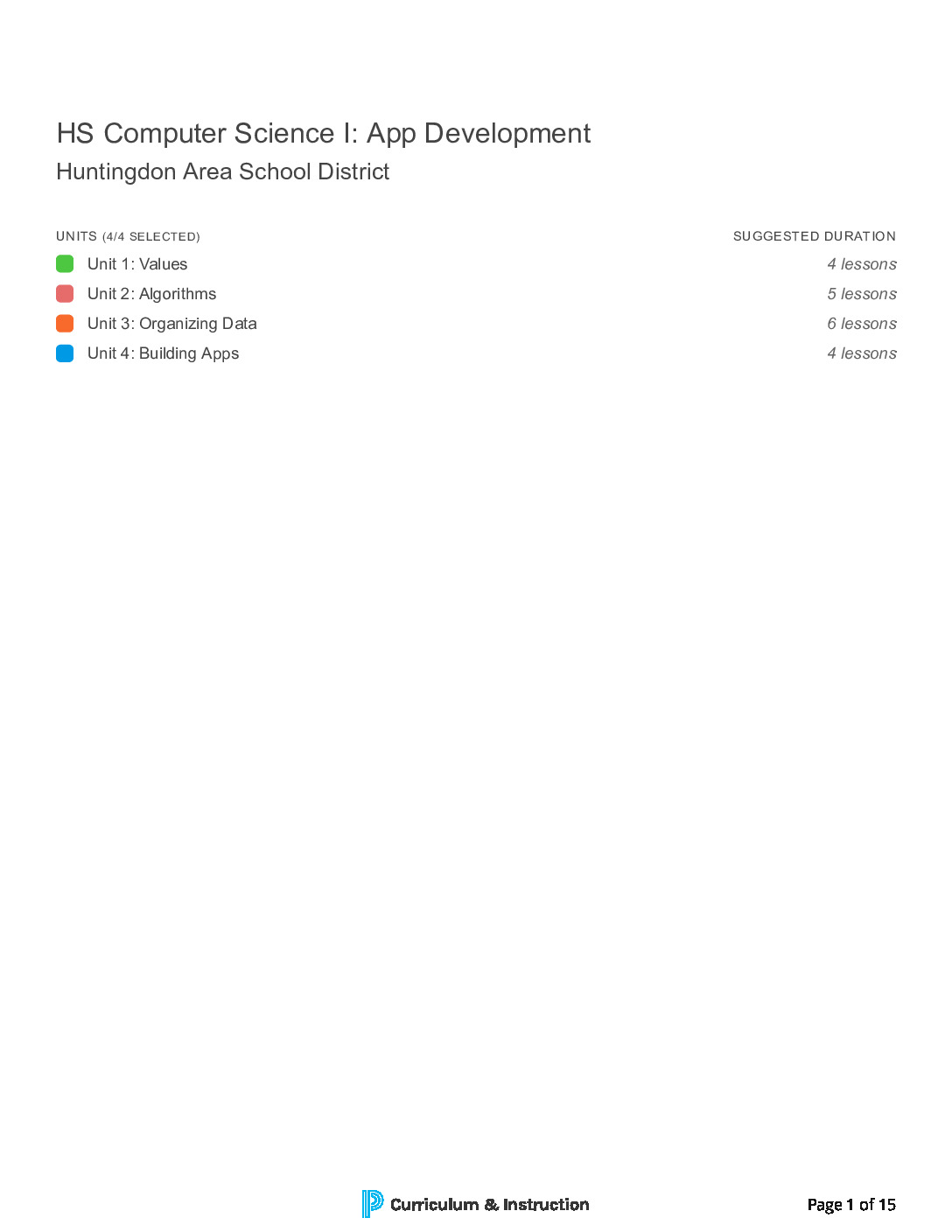 HS Computer Science I App Development